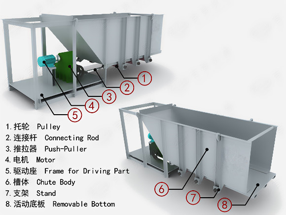 槽式給料機是一款用于大塊物料的周期性往復式給料設備。適用于短距離輸送中等粒度物料,在礦山、選廠、化工、水泥、建材等部門,廣泛用于從儲料倉往破碎、運輸?shù)葯C械作均勻連續(xù)給料。